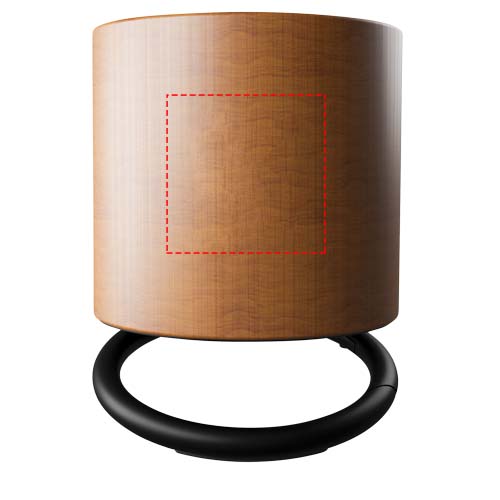 Vaahterapuinen 3 W:n Bluetooth-kaiutin kaiverretulla logolla ja kahdella äänilähdöllä, joiden ansiosta äänenlaatu on verraton tämän kokoiseksi kaiuttimeksi. Rengaskaiutinta kallistamalla äänen voi suunnata haluttuun suuntaan. Sisäänrakennettu mikrofoni and neuvottelupuhelutoiminto. Kapasiteetti: 500 mAh – 3,7 V akku. Taajuus: 50 Hz – 20 KHz. Äänilähtö: 1 x 3 W. Impedanssi: 4 Ω. Bluetooth® 5.0. Nettopaino: 100 grammaa. Koko: ∅ 50 mm x 45 mm. Toimitetaan lahjapaketissa, jossa on magneettinen sulkemismekanismi ja joka on valmistettu kierrätetystä paperista.
