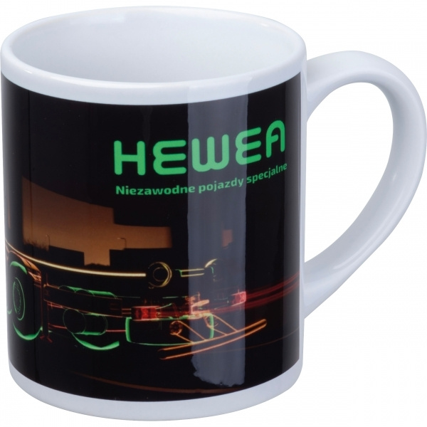 Keraaminen sublimaatiomuki, jonka tilavuus on 250 ml. Logosi painetaan mukiin sublimaatiopainatuksella.