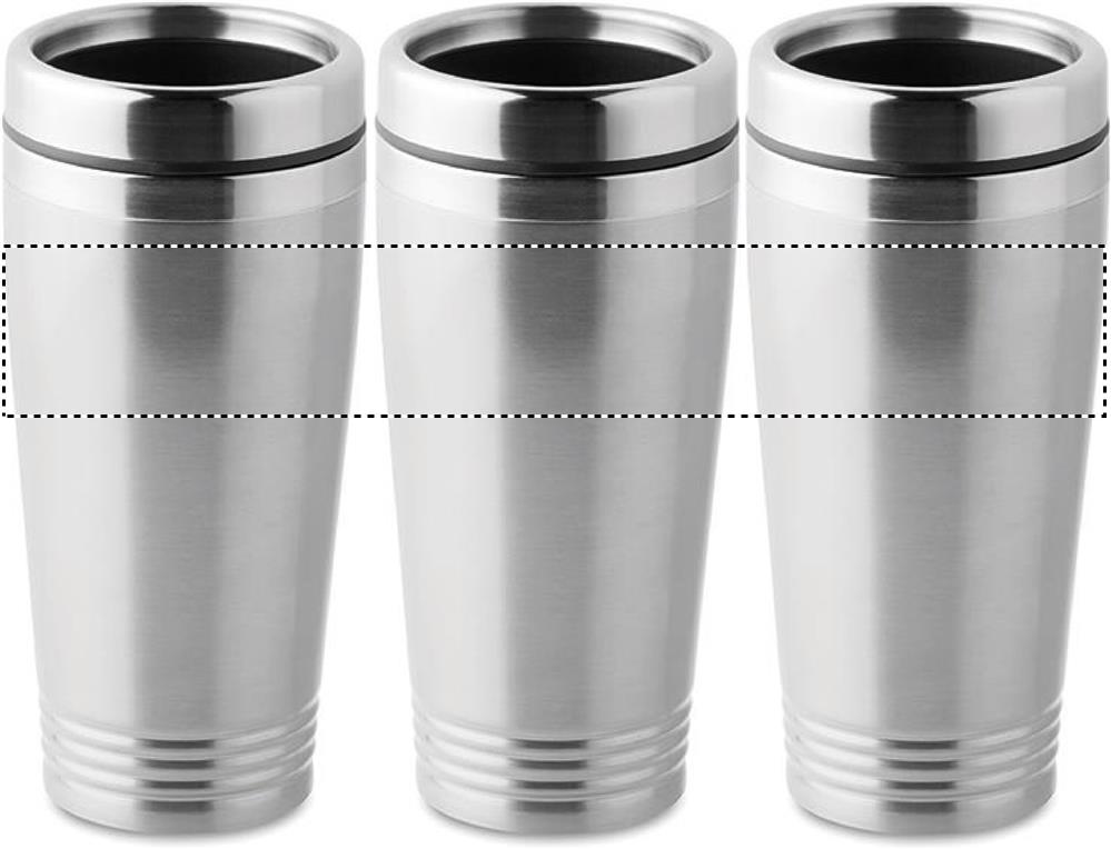 Ruostumattomasta teräksestä valmistettu kaksiseinäinen 400 ml termosmuki, PP kannella.