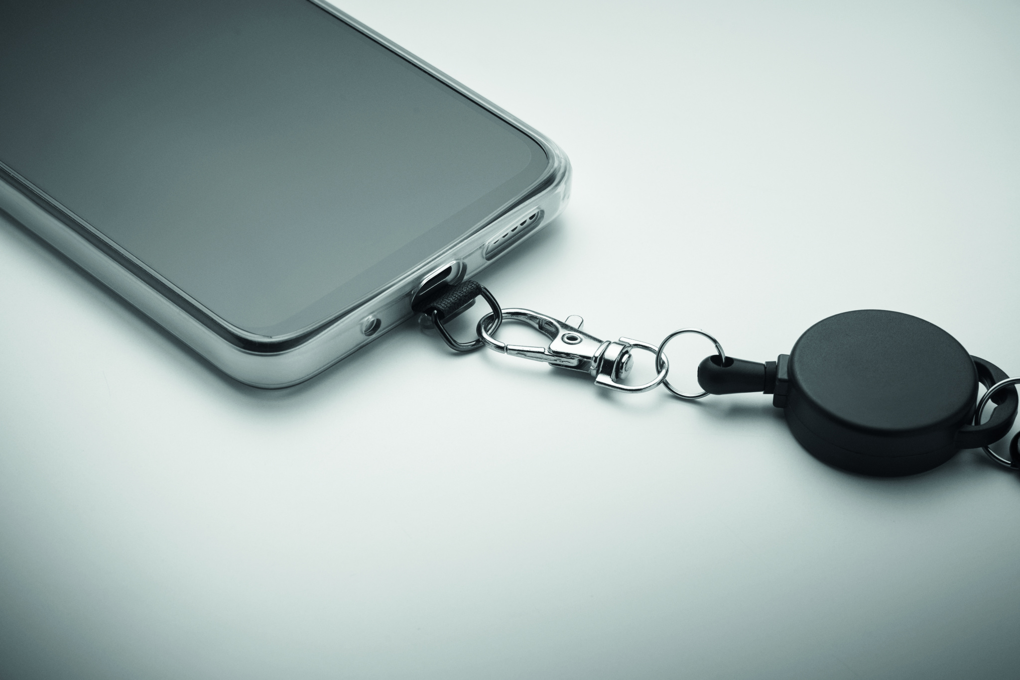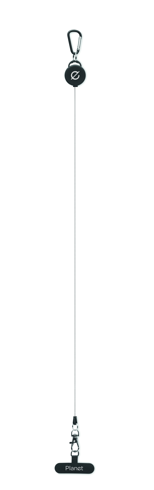 Sisäänvedettävä puhelinpidike ja/tai nimilapun pidike ABS-muovista, jossa alumiininen karabiinilukko. Karabiinilukko ei ole tarkoitettu kiipeilyyn (ei-ammattikäyttöön).