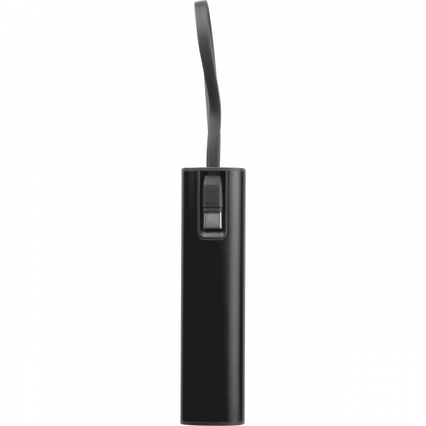 Alumiinista valmistettu varavirtalähde, jossa on 5 000 mAh:n litiumioniakku, lataustason näyttö ja integroitu USB-C-latauskaapeli. Mukana tulee 30 cm:n Type-A - Type-C -latauskaapeli. Logosi on laserkaiverrettu näytön alle.