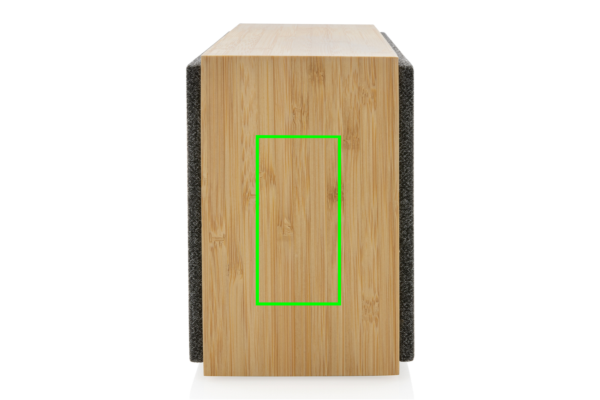 Ylellinen 20W kaiutin selkeällä äänentoistolla ja vahvalla bassolla. Ulkokuori on valmistettu FSC 100% sertifioidusta bambusta. Muoviosat on valmistettu RCS (Recycled Claim Standard) sertifioidusta kierrätetystä ABS-materiaalista. Kierrätetyn materiaalin kokonaismäärä: 17% perustuen tuotteen painoon. RCS sertifiointi varmistaa kierrätetyn materiaalin täysin sertifioidun toimitusketjun. Kaiuttimessa on BT 5.1 sulavaa toimintaa varten jopa 10 metrin kantamalle ja alhaiselle energiankulutukselle. 4000 mAh akku mahdollistaa jopa 6 tunnin toistoajan ja se voidaan ladata uudelleen 3 tunnissa. Vastaustoiminnolla ja mikrofonilla puheluita varten. Pakattu FSC-sekoituksesta valmistettuun kraft-pakkaukseen. Sisältää RCS sertifioidun TPE-latauskaapelin.