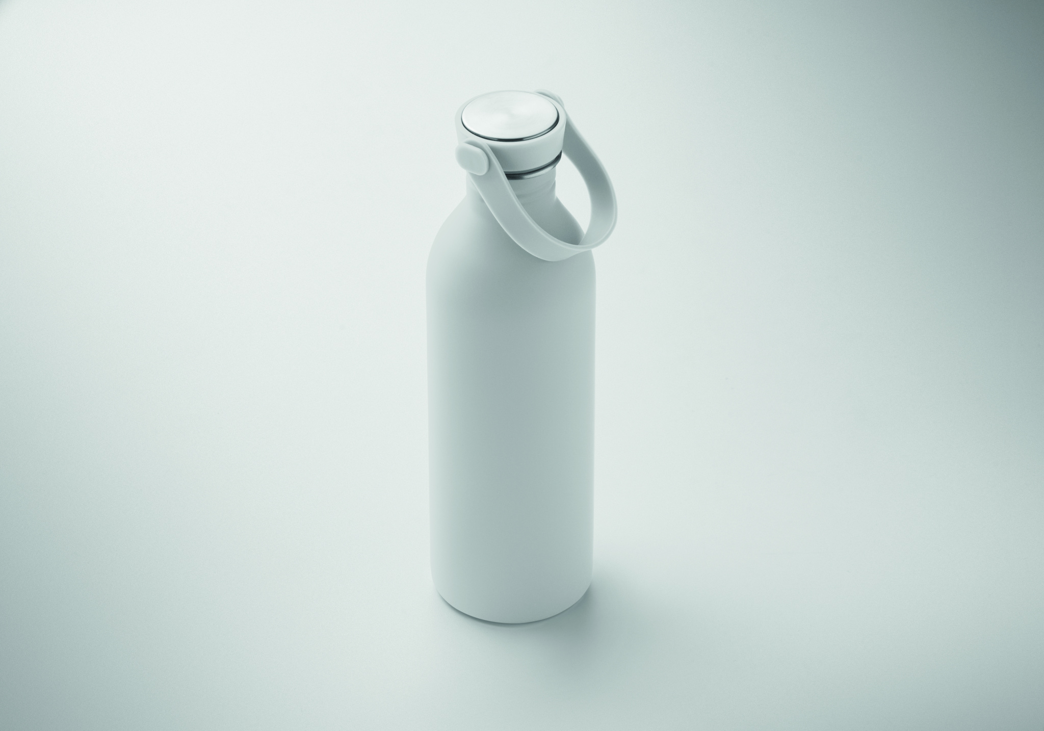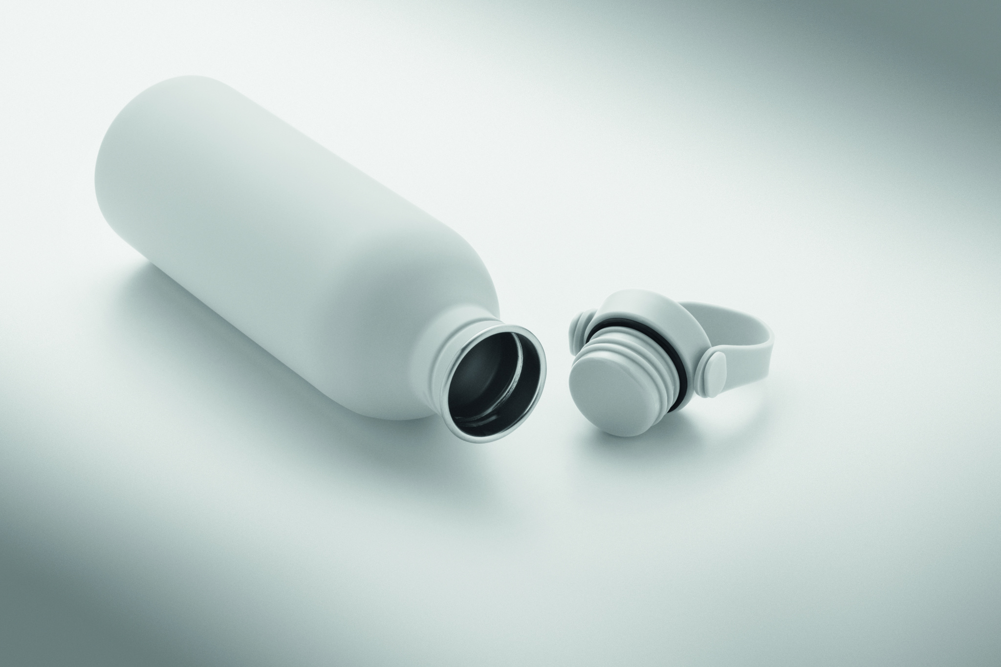 Yksiseinäinen pullo, joka on valmistettu 90 % kierrätetystä ruostumattomasta teräksestä ja 10 % ruostumattomasta teräksestä, kumipinta. Mukana PP- ja SS-kansi silikonikahvalla. Tilavuus: 500 ml.