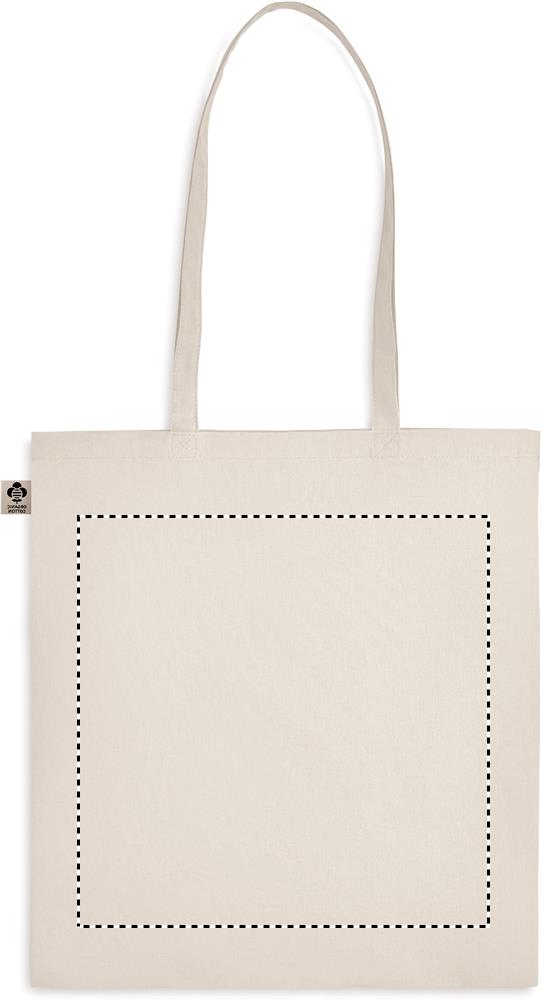 Ekologiškos medvilnės pirkinių krepšys ilgomis rankenomis. Klasikinio dizaino krepšys, skirtas kasdieniams maisto produktams ar kitiems daiktams nešti. Krepšį nešiokite rankose arba per petį ilgomis rankenomis. Pagaminta iš 100% natūralios ekologiškos medvilnės 140 gr/m².