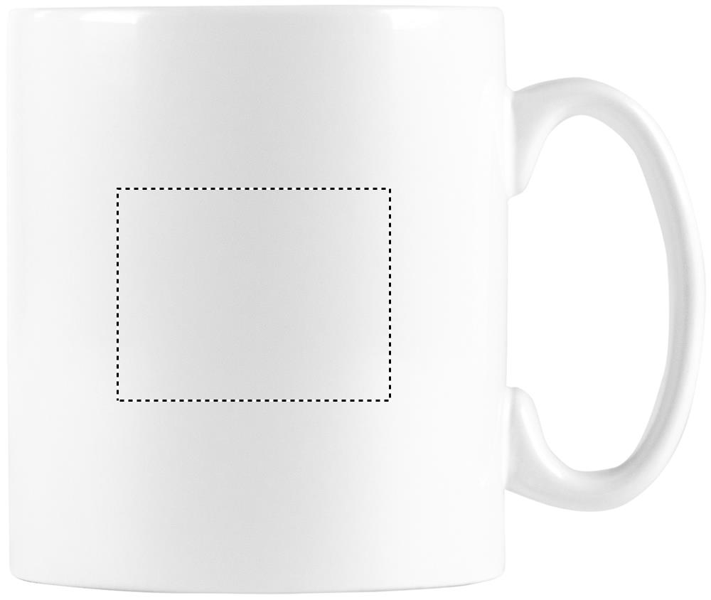 Keraminis 300 ml talpos puodelis su specialia danga sublimacijai. Individuali pakuotė baltoje kartoninėje dėžutėje.