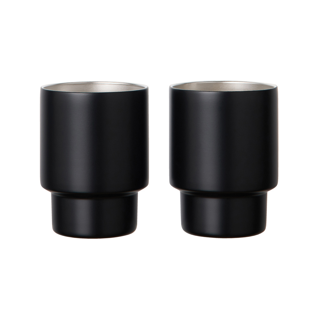 VINGA Nagano RCS perdirbtų nerūdijančio plieno puodelių rinkinys, 2 vnt., juoda