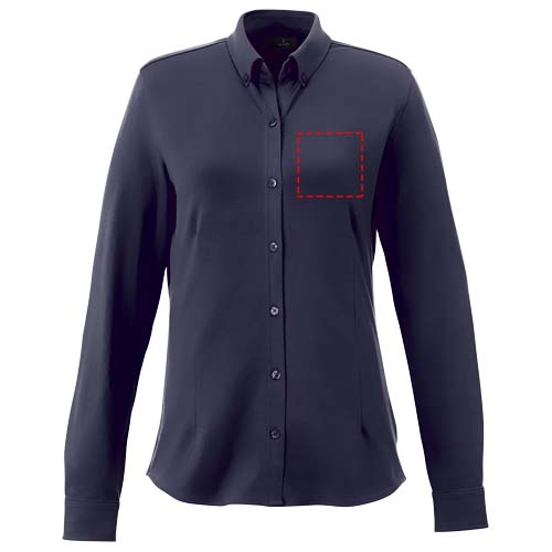 Pašauduma apkakle. Stretch audums. Regulējama aproce ar vienu kroku. Pogājama apkakle. Formas šuves un konusveida viduklis glaimojošam piegulumam. Satīna caurules kakla iekšpusē. Krāsotas, iegravētas pogas. Austa galvenā etiķete.