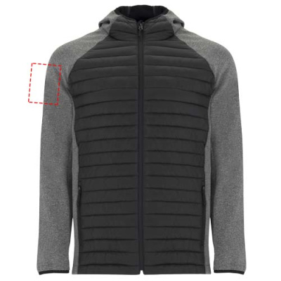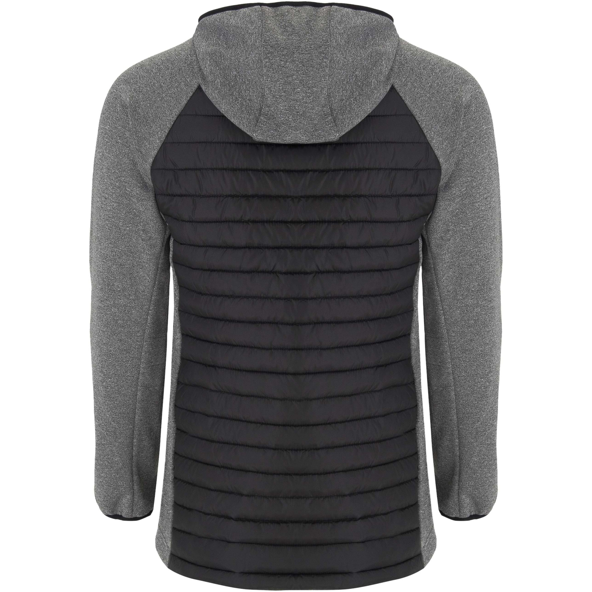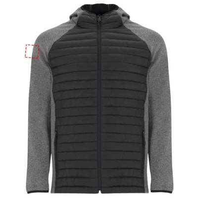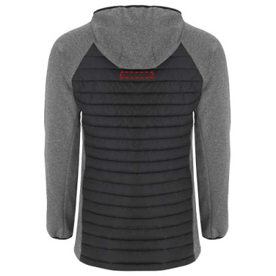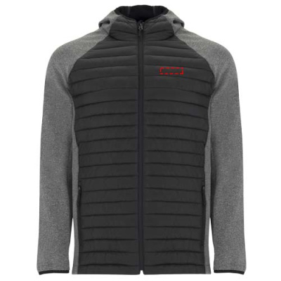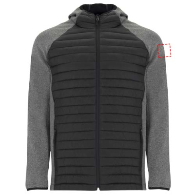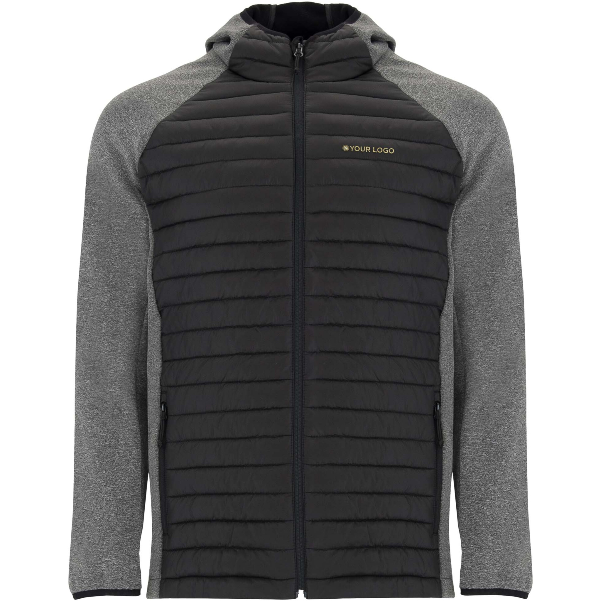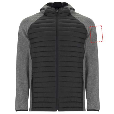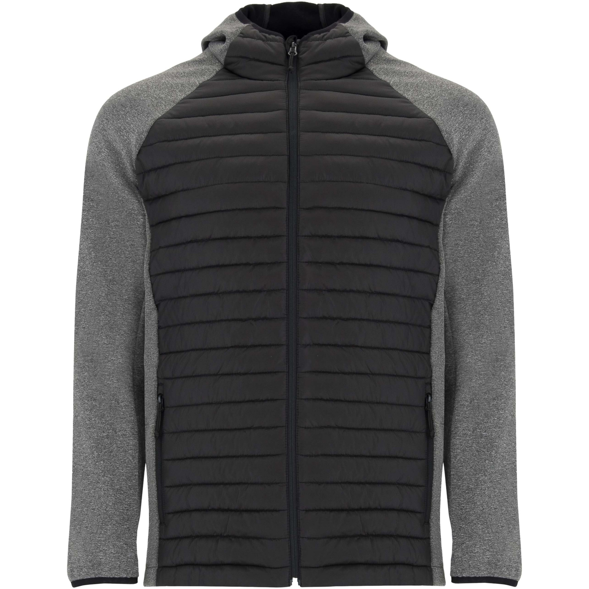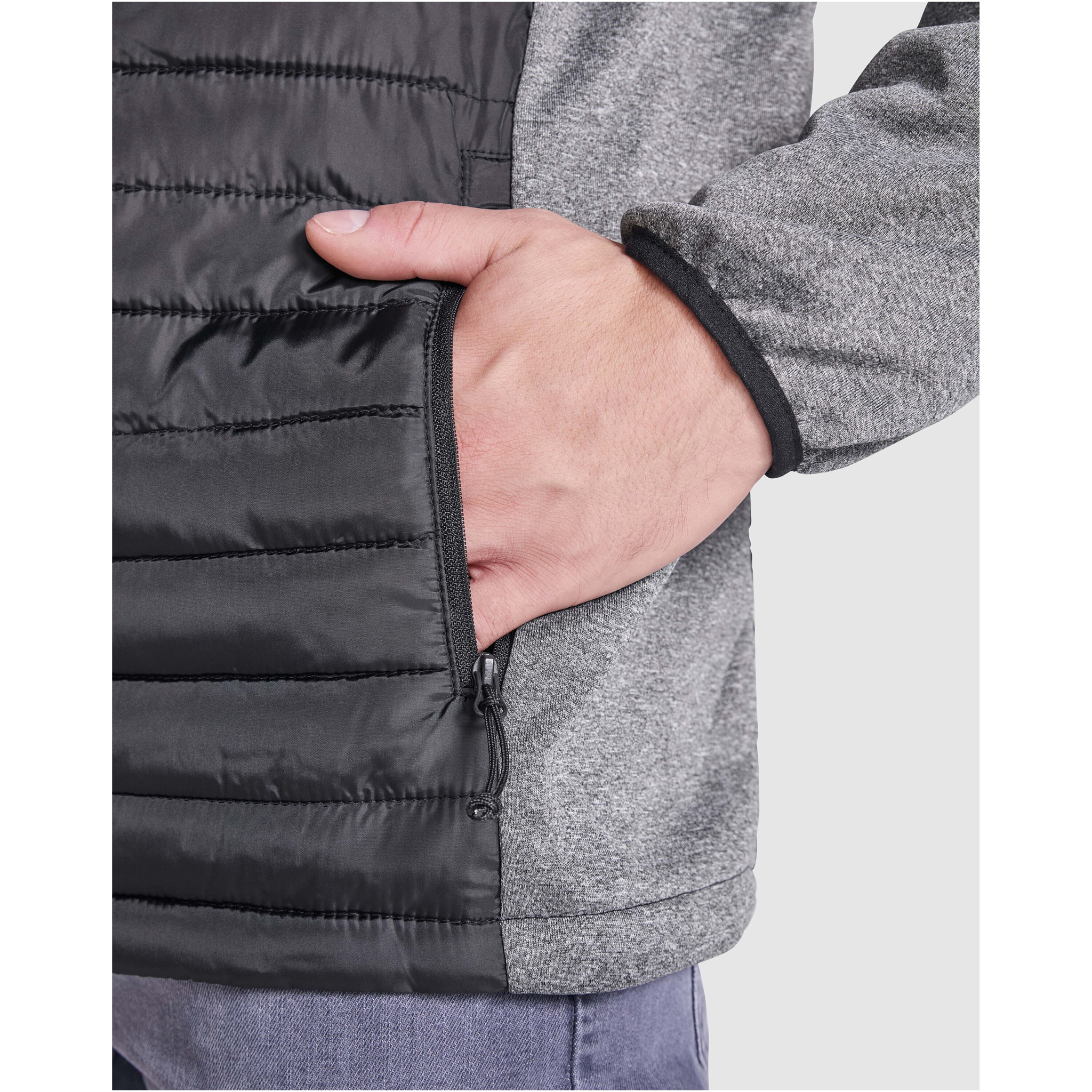 Unisex jaka divu audumu kombinācijā: Fiksēta regulējama kapuce. Raglana piedurknes. Piedurknes, sānu paneļi un kapuce no softshell auduma. Stepēts spalvu pieskāriena audums priekšā un aizmugurē. Apgriezts rāvējslēdzējs ar atbilstošu zoda aizsargu un izvilcēju. Divas priekšējās kabatas ar rāvējslēdzējiem. Pieskaņota elastīga apdare apkaklei, aprocēs un apakšmalā. Noņemama etiķete. Vēja necaurlaidīgs modelis. Vīriešu modele ir 184 cm gara un valkā L izmēru, bet modele ir 179 cm gara un valkā S izmēru.