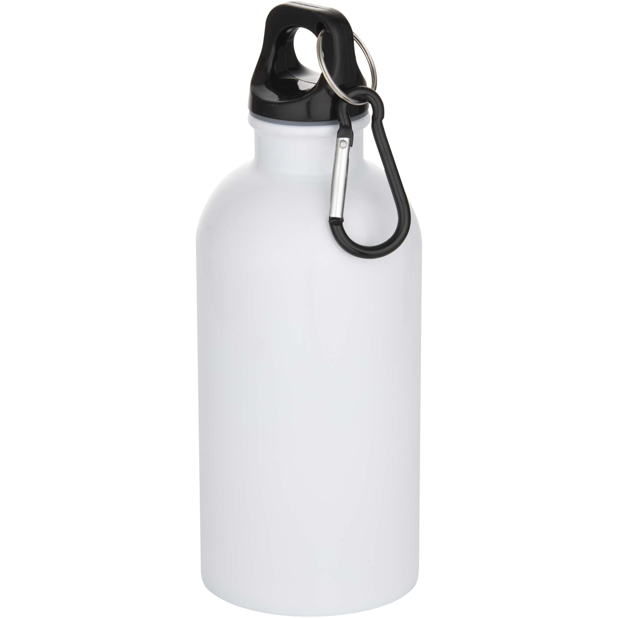Vienmēr uzturiet hidratāciju ar šo izturīgo, bet vieglo 400 ml ūdens pudeli, kas izgatavota no RCS sertificēta pārstrādāta nerūsējošā tērauda ar īpašu sublimācijas pārklājumu. Tā ir lieliska sabiedrotā sportam, vienas dienas izbraucieniem vai birojam. Viensienas Oregon pudelei ir skrūvējams vāciņš, un tā piedāvā daudz vietas jebkura veida logotipa pievienošanai. Droši piestipriniet pievienoto karabīni (nav piemērota alpīnismam) pie somas, lai tā nepazustu.