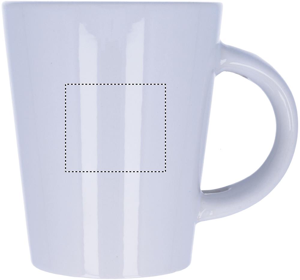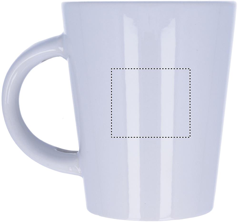 Akmens krūze ar tilpumu 300 ml ar speciālu pārklājumu sublimācijas drukāšanai. Tam ir karote uz roktura. Individuāls iepakojums baltā kartona kastē.