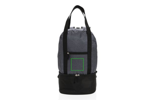Этот двухцветный рюкзак из полиэстера 500D имеет основное отделение для пляжных принадлежностей и нижнее отделение-холодильник с местом для 8 банок. Легко трансформируется в сумку-тоут с помощью ремней.