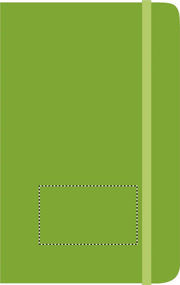 Блокнот формата А6 в обложке из полиуретана на резинке. 96 линованых страниц.