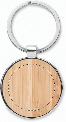 Брелок круглый из цинкового сплава с бамбуком. Бамбук является натуральным продуктом, могут быть небольшие различия в цвете