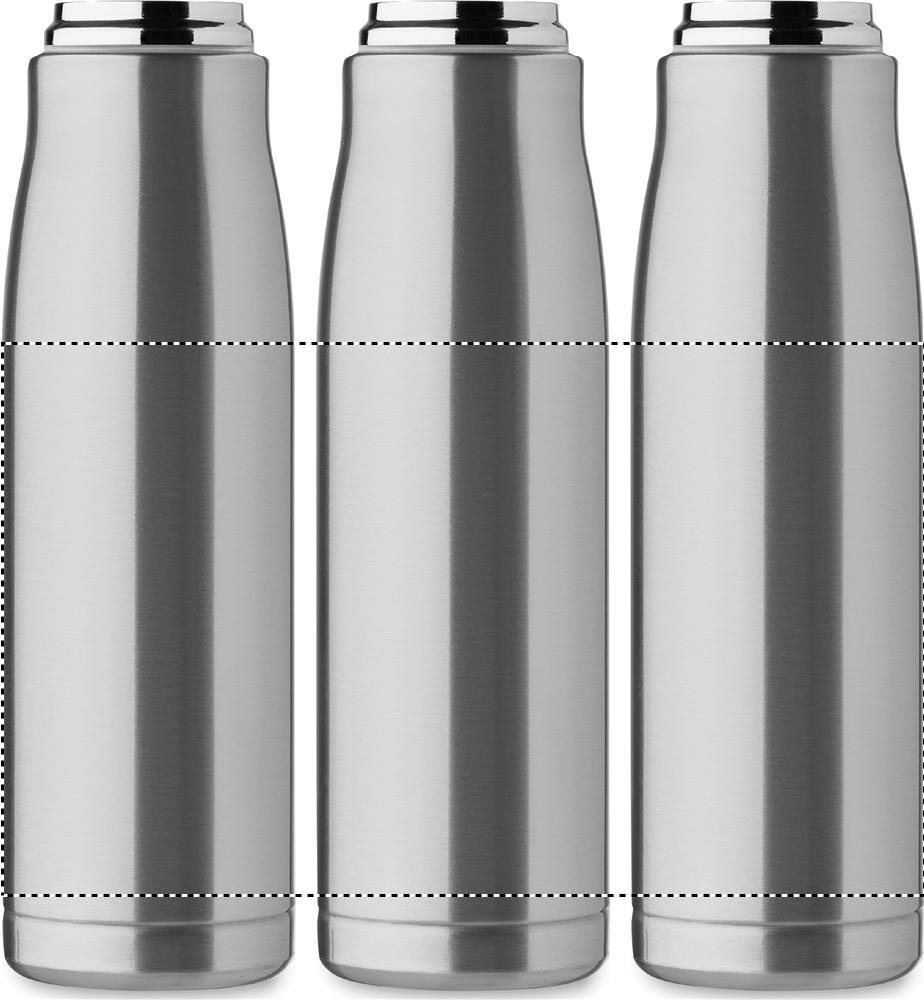 Double wall recycled stainless steel insulated vacuum bottle (90% recycled stainless steel and 10% stainless steel) with integrated cord grip on PP lid. Leak-free. Capacity: 500 ml.