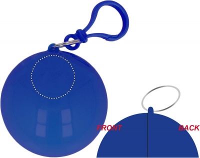 Прозрачный дождевик упакованный в контейнер в форме шара с карабином, что позволяет закреплять его на поясе или сумке.
