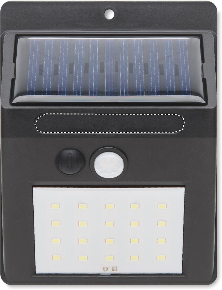 Фонарь на солнечной батарее с 20 светодиодами из полипропилена с датчиками движения и ночи. Датчик движения PIR (пассивный инфракрасный датчик). Ночной датчик CDS. Степень защиты: IP 44. Емкость аккумулятора: 800 мАч.