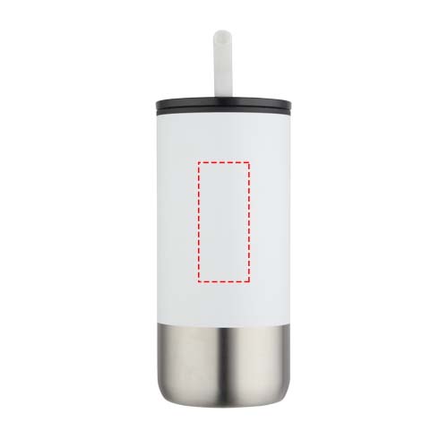 Стакан имеет двойные стенки и изоляцию, а также трубочку из переработанной нержавеющей стали с силиконовым наконечником для удобства использования. Внутренняя стенка изготовлена из пластика РР, а внешняя — из переработанной нержавеющей стали, сертифицированной RCS. Сдвижная крышка из пластика PS и ABS в сочетании с матовым покрытием придает стакану элегантный вид. Объем: 480 мл.