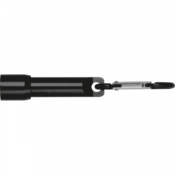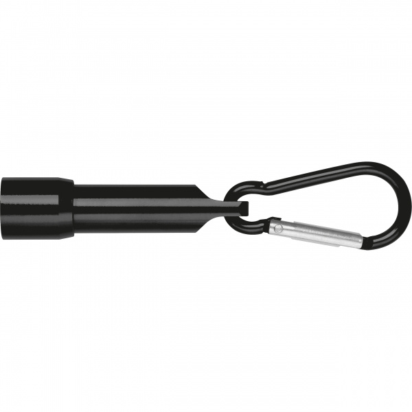 Мини-фонарик с карабином из переработанного алюминия. В комплекте 4 батарейки-таблетки. Ваш логотип нанесён на фонарик лазерной гравировкой.