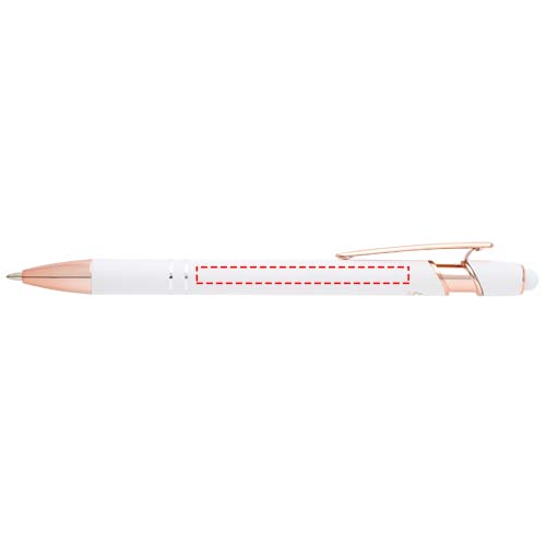 Шариковая ручка Nanna с покрытием из розового золота имеет корпус из переработанного алюминия и сенсорный стилус из силикона. Переработанный алюминий уменьшает количество отходов на свалках и помогает сохранять природные ресурсы для сокращения выбросов парниковых газов. Цвет чернил: черный. Длина непрерывной линии: 800 метров. Размер пера: 1,0 мм.