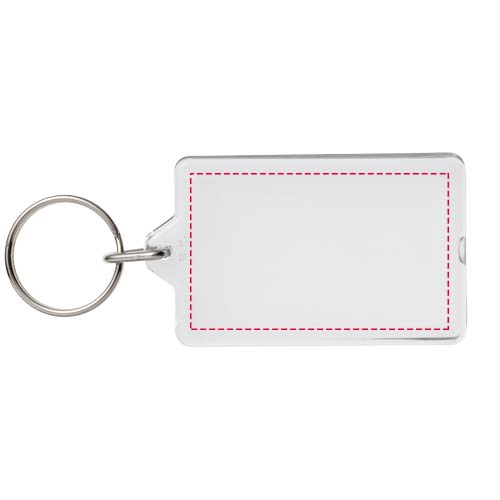 Прозрачный прямоугольный брелок G1 с металлическим разъемным кольцом. Этот брелок можно открыть с помощью монеты. Металлическая петля для крепления кольца представляет собой плоский профиль, что делает его идеальным для пересылки. Размеры печатной вставки: 5,0 см x 3,0 см.