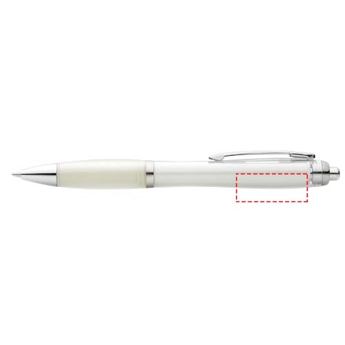Шариковая ручка с кнопочным механизмом и мягким держателем.
