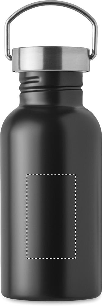 Single wall bottle in recycled stainless steel (90 % recycled stainless steel and 10% stainless steel) with lid and handle. Leak-free. Capacity: 500 ml.