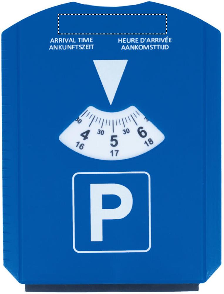 Пластиковый скребок для лобового стекла и парковочная карта с отсчетом времени стоянки автомобиля.