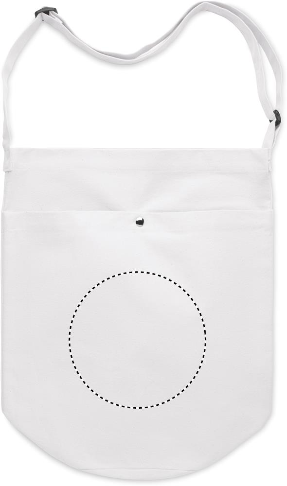 Холщовая сумка на длинном регулируемом плечевом ремне с большим передним карманом на застежке. Есть внутренний карман. 270 гр/м².