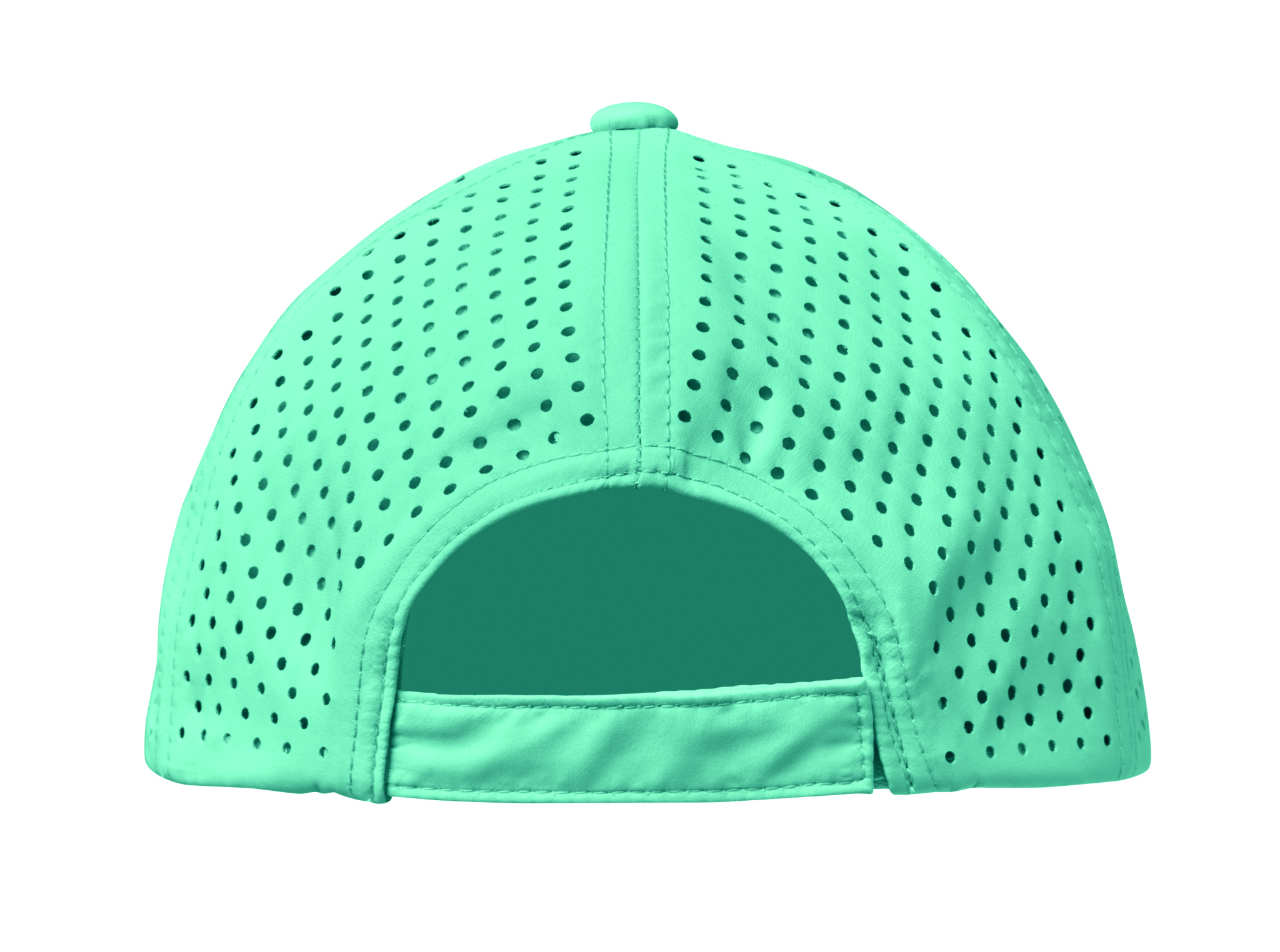 5-panelers polyesterkeps med justerbar kardborrestängning och laserperforerade hål med 2 sydda öljetter i matchande färg. Materialet är snabbtorkande, svett- och vattenavvisande. 130gr/m²