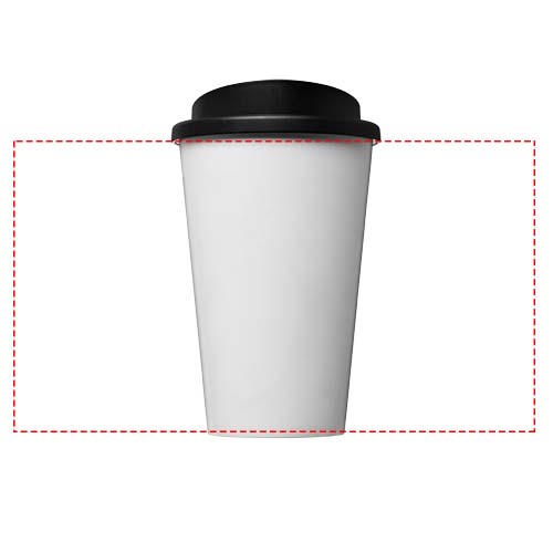 Termosmugg med dubbelvägg och skruvlock. Muggen har en fullfärgad omslutande design som är gjuten på produkten. Tillverkad av 95 % återvunnen plast och har en svart insida. Muggen är helt återvinningsbar och tål maskindisk och mikrovågsugn. Rymmer 350 ml och är BPA-fri. Förpackad i en komposterbar påse. Tillverkad i Storbritannien.