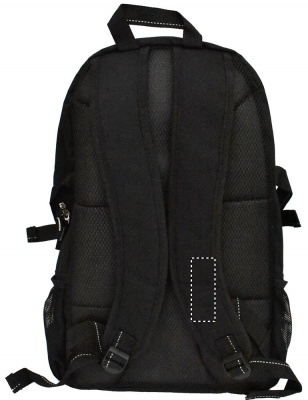 15-tums ryggsäck i 600D med rip-stoppdetaljer. Innehåller ett fack för 15 tums dator, en främre ficka med dragkedja och 2 sidofack. Justerbara axelremmar.