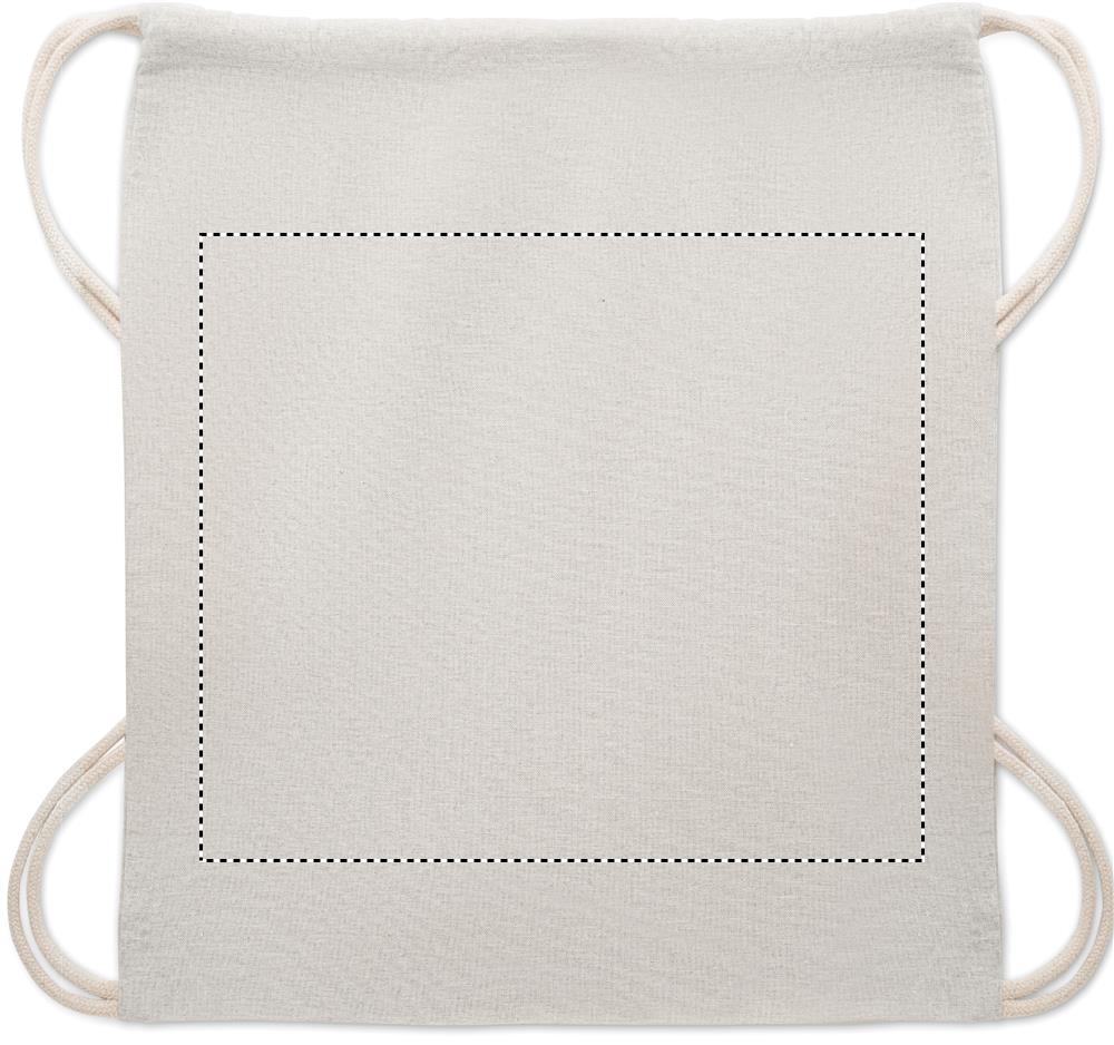 Påse med dragsko i återvunnen bomull (80 % återvunnen bomull, 20 % vanlig bomull). 140 gr/m².