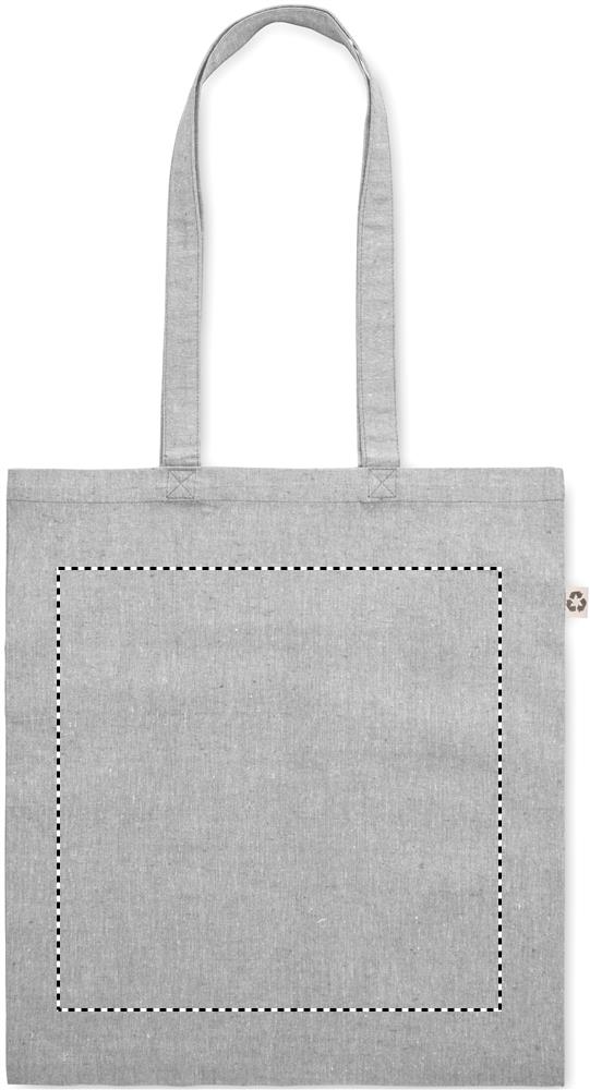 Tygkassae i återvunnen bomull (80 % återvunnen bomull, 20 % bomull) med långa handtag. 140 gr/m².