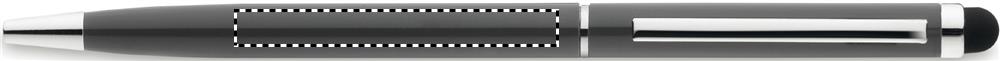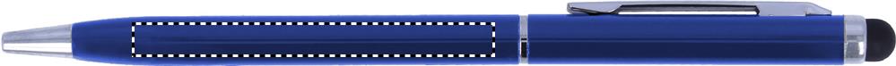 Aluminium twist kulspetspenna med kromat clips och touch screen topp. Blått bläck.