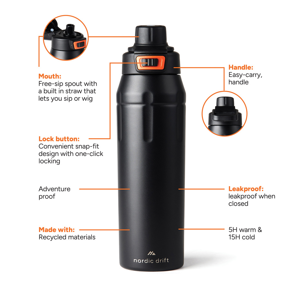 Nordic Drift Trail RCS isolerad låsbar sportflaska, svart