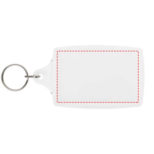 Orca stor nyckelring L4. Genomskinlig nyckelring L4 med delad metallring. Metallringen har en platt profil som är idealisk för utskick. Tryckinläggets dimensioner: 7 cm x 4,5 cm. GPPS-plast.