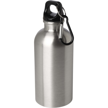 Håll alltid vätskebalansen uppe med denna hållbara men lätta vattenflaska på 400 ml tillverkad av RCS-certifierat återvunnet rostfritt stål. Den är den perfekta följeslagaren för sport, dagsutflykter eller för att använda på kontoret. Flaskan Oregon med enkelvägg har ett vridbart lock och gott om plats för att lägga till logotyper. Fäst den bifogade karbinhaken (inte lämplig för klättring) säkert på en väska för att undvika att tappa bort den.