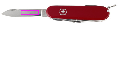Funktioner: 1.stort blad 2.litet blad 3.korkskruv 4.burköppnare med: 5.-liten skruvmejsel 6.flasköppnare med: 7.-stor skruvmejsel 8.-trådavdragare brotsch 9.stans 10.syögla 11. nyckelring 12. pincett 13. tandpetare 14. sax 15. krok 16. träsåg