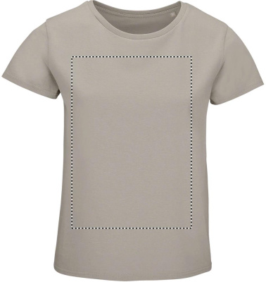 SOL'S PIONEER DAM, RUNDHALSAD, FIGURNÄRA JERSEY-T-SHIRT FÖR DAMER, 100 % ekologiskt odlad bomull, Naturlig finish för en mjukare och jämnare känsla JERSEY 175, Ribbad krage i 100 % bomull, Rund halsringning, Halstejp, Kroppsnära skärning, Rundstickad, (1) Askgrå: 98 % ekologisk bomull / 2 % viskos, (2) Gråmelerad: 85 % ekologisk bomull / 15 % viskos för matchande storlekar, se storlekstabellen i avsnittet om produktdokumentation.