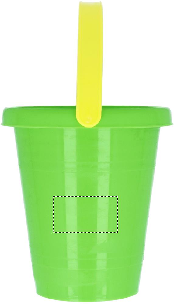 Strandset för barn, innehåller en hink, spade, kratta och 2 st formar för att göra fina sand modeller. Material: PP.