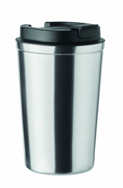 Take away mugg med dbbel vägg i rostfritt stål och PP lock. Ta med dig ditt kaffe, te eller annan varm dryck med denna snygga mugg. Håller din dryck varm eller kall så att du kan njuta av den. Kapacitet: 350 ml. Läckagefri.