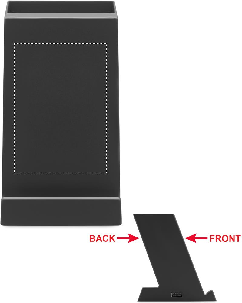 10W trådlös snabbladdare med dubbel spole och pennhållare i ABS. Uteffekt: DC 9V/1.10A (15W) för snabbladdning. 1 USB-A-port med strömutgång. Kompatibel med senaste Androids, iPhone® 8, X och nyare.
