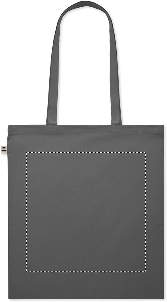 Kasse i ekologisk bomull med långa handtag. 180 gr/m².