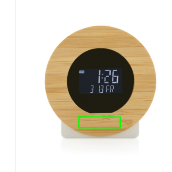 Logotrade reklamprodukter bild: Utah LCD skrivbordsklocka RCS rplast & bambu