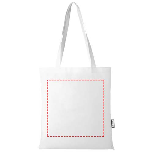 Den stora tygväskan Zeus är tillverkad av slitstark och rivtålig GRS-återvunnen RPET och är ett perfekt och mer hållbart alternativ för mässor eller konferenser. Den tunna designen gör den till en elegant modell som passar för lättare föremål som en anteckningsbok och en penna. Handtagen är 29 cm långa och därför är väskan lätt att bära över axeln. Klarar upp till 5 kg vikt.